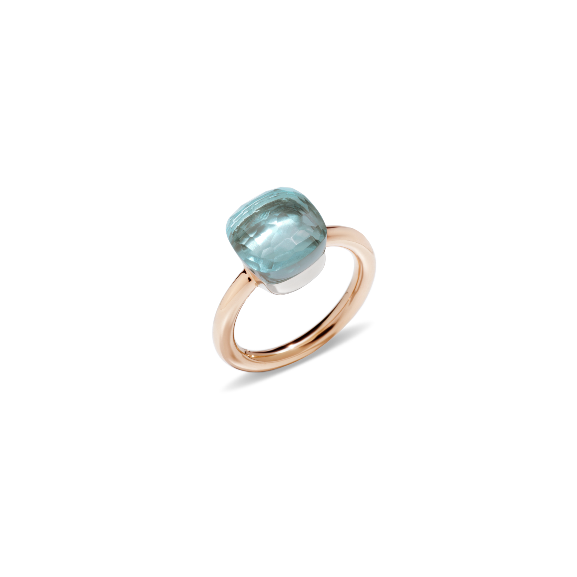 Anello Nudo classic in oro rosa con castone in oro bianco e topazio azzurro sfaccettato.