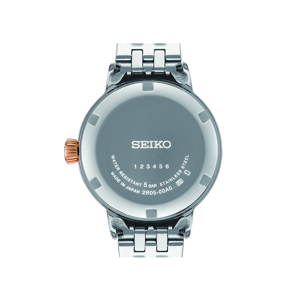 Il modello Seiko Presage Cocktail SRE009J1 si ispira al cocktail Clover Club. Questo orologio presenta un quadrante bianco e lancette e indici in color oro rosa. Il quadrante è sottile e delicato con una finitura ordinata. Diversi strati di un rivestimento trasparente vengono applicati al quadrante prima di essere levigati per un effetto abbagliante. Otto diamanti posti a livello degli indici aggiungono un tocco di lusso e glamour al polso.