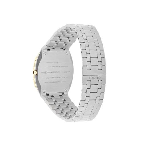 Con le sue linee eleganti, GUCCI 25H è ispirato dalle forme sinuose dell’architettura contemporanea. Coniugando armoniosamente l’autentico stile contemporaneo e il savoir-faire della tradizione orologeria artigianale, il modello segna il debutto di Gucci nelle collezioni di alta orologeria.